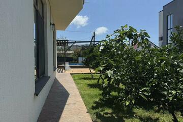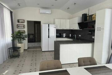 Продается дом, два этажа, 3 комнаты. Площадь дома 135 кв.м., участок 5 сот. 2-этажный дом, монолитный, постройка 2017 года. Водопровод подключен, несколько санузлов, электричество 220 вольт, дизайнерский ремонт, автономное твердое* отопление. Вдобавок бассейн, кондиционер, интернет. Подробнее по телефону.