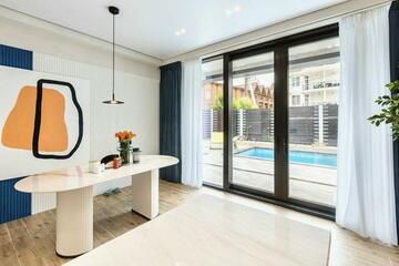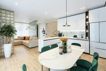 Продается дом, двухэтажный, 4 комнаты. Площадь 150 м2, участок 4.7 сот. Двухэтажный дом, панельный, постройка 2022 года. Несколько санузлов, автономное газовое отопление, электричество 220 вольт, дизайнерский ремонт, водопровод подключен. Еще сауна/баня, бассейн, кондиционер, интернет. Все подробности по телефону.