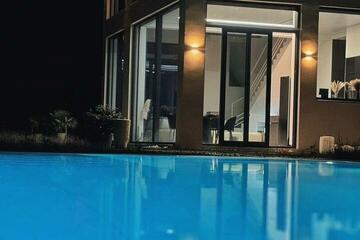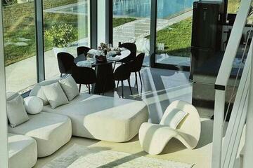 Продается дом, двухэтажный, три комнаты. Площадь дома 195 кв.м., участок 12 сот. Двухэтажный дом, монолитный, построен в 2025 г. Несколько санузлов, электричество 220 вольт, водопровод подключен, автономное газовое отопление, дизайнерский ремонт. Возможен онлайн-показ. Можно купить в ипотеку. Есть ванна. Есть душ. Закрытая территория. А также гараж, сауна/баня, бассейн, септик, кондиционер, интернет, мебель, высокие потолки, встроенная мебель, встроенная техника, сад/огород.
