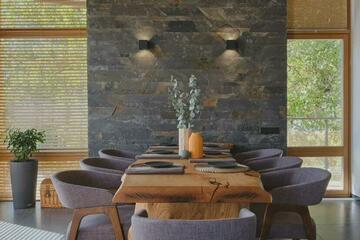 •Фасад в отделке испанским травертином — благородная фактура, устойчивость к времени и климату