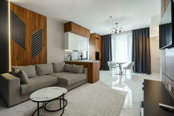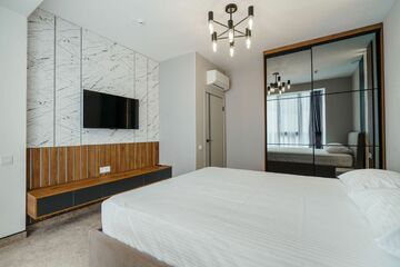 В продаже дом, два этажа, четыре комнаты. Площадь дома 260 м2, участок 7 сот. Двухэтажный дом, блочный, год постройки 2024. Качественный ремонт, автономное газовое отопление, электричество 220 вольт, несколько санузлов, водопровод подключен. Есть ванна. Есть душ. Закрытая территория. Вдобавок газон, гараж, сауна/баня, кондиционер, интернет, балкон/лоджия застеклен, мебель, высокие потолки, встроенная мебель, встроенная техника.