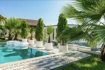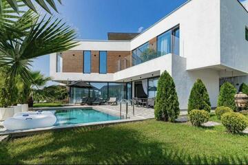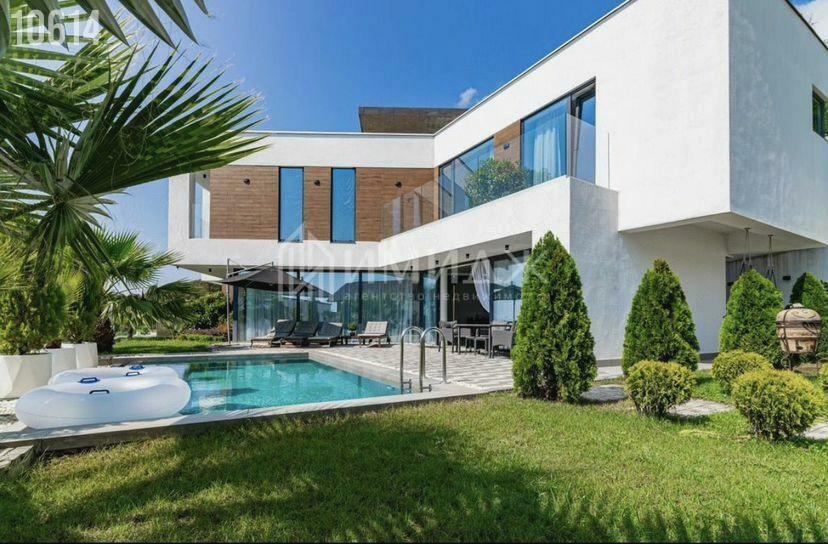 Продается дом, двухэтажный, четыре комнаты. Площадь дома 350.4 м², участок 10 сот. 2-этажный дом, пенобетонный блок. Несколько санузлов, дизайнерский ремонт, автономное газовое отопление, электричество 220 вольт, своя скважина. Еще сауна/баня, бассейн.