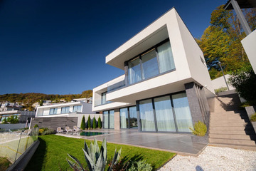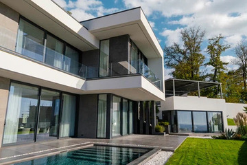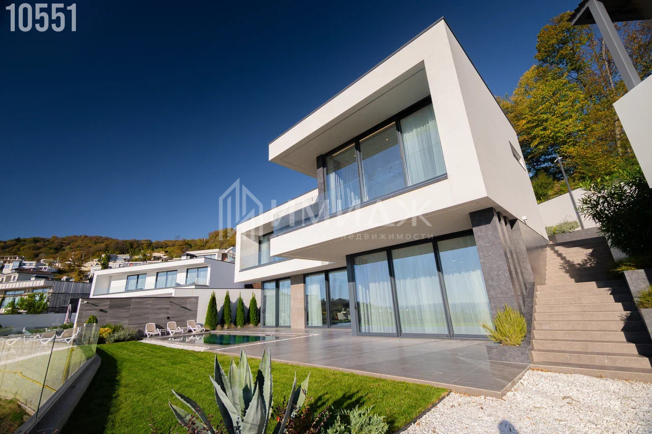 · Планировка: Просторная гостиная-столовая с панорамным остеклением, выходом на террасу и камином; современная кухня-студья с техникой Bosch/Miele; несколько спален-люкс с собственными гардеробными и ванными комнатами; кабинет, зона спа, прачечная, постирочная.