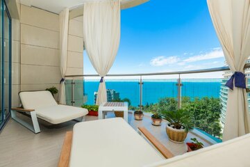 Продаётся квартира 110 м² в престижном жилом комплексе «Королевский парк» в Сочи. В квартире большая терраса с панорамным видом на море и национальный парк, качественный ремонт с использованием дорогих материалов и мебель от ведущих европейских производителей. Территория комплекса огорожена и находится под круглосуточной охраной, во дворе есть детская площадка, зона отдыха и подземный паркинг. Рядом расположены все необходимые объекты инфраструктуры: лифты, бассейны, SPA-центр, фитнес-клуб, детские площадки и сервисные службы. Дорога до центра Сочи занимает 10–15 минут, до аэропорта — 20–30 минут, до Олимпийского парка — 30–40 минут, до Красной Поляны — примерно 1 час.