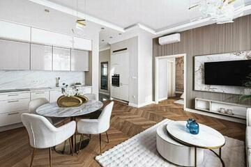 Простор и стиль: Светлая кухня-гостиная, объединенная с залом, и ДВЕ БОЛЬШИЕ спальни. Каждая спальня — это приватная зона с собственной современной ванной комнатой и душевой.