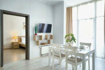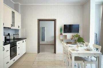 Продается 2x комнатная квартира. Площадь 74 кв.м., жилая площадь 30 кв.м., кухня 30 кв.м. Третий этаж 5-этажного дома, монолитный, дом постройки 2014 года. Раздельный санузел, ремонт дизайнерский, есть балкон, центральное отопление, пассажирский и грузовой лифт. Вдобавок кондиционер, интернет, мебель, высокие потолки, встроенная мебель, встроенная техника, мебель в комнатах, мебель на кухне, шкафы, спальные места, бытовая техника, гардеробная, панорамные окна, тёплый пол.