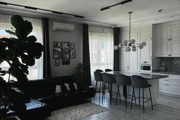 Продается многокомнатная квартира. Общая площадь 205 м2, жилая 145 м2, площадь кухни 35 м2. 4 этаж 5-этажного дома, монолитный, построен в 2012 г. Ремонт дизайнерский, несколько санузлов, есть лоджия, пассажирский и грузовой лифт. А также кондиционер, интернет. Все вопросы по телефону.